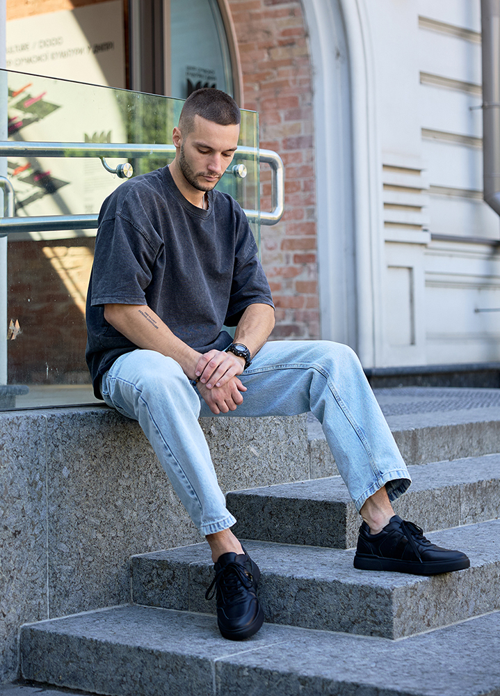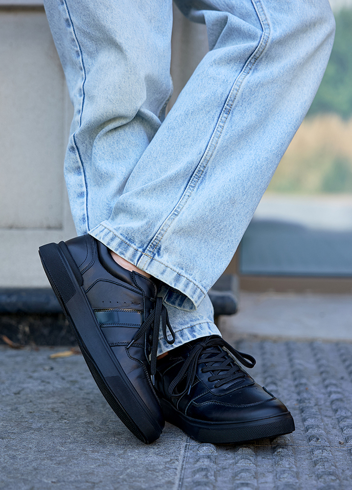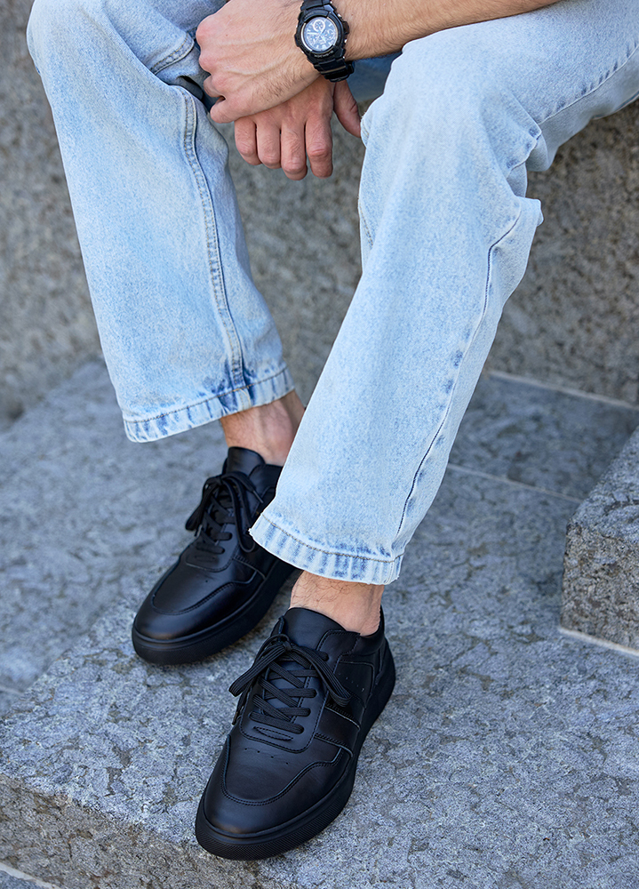 Кроссовки мужские GALAXY кожаные черные 8522-28