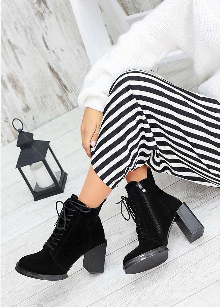 Ботинки ботильоны женские замшевые черные Леона 7165-28