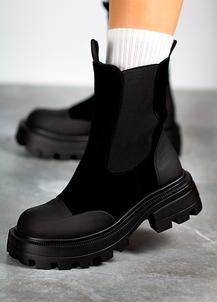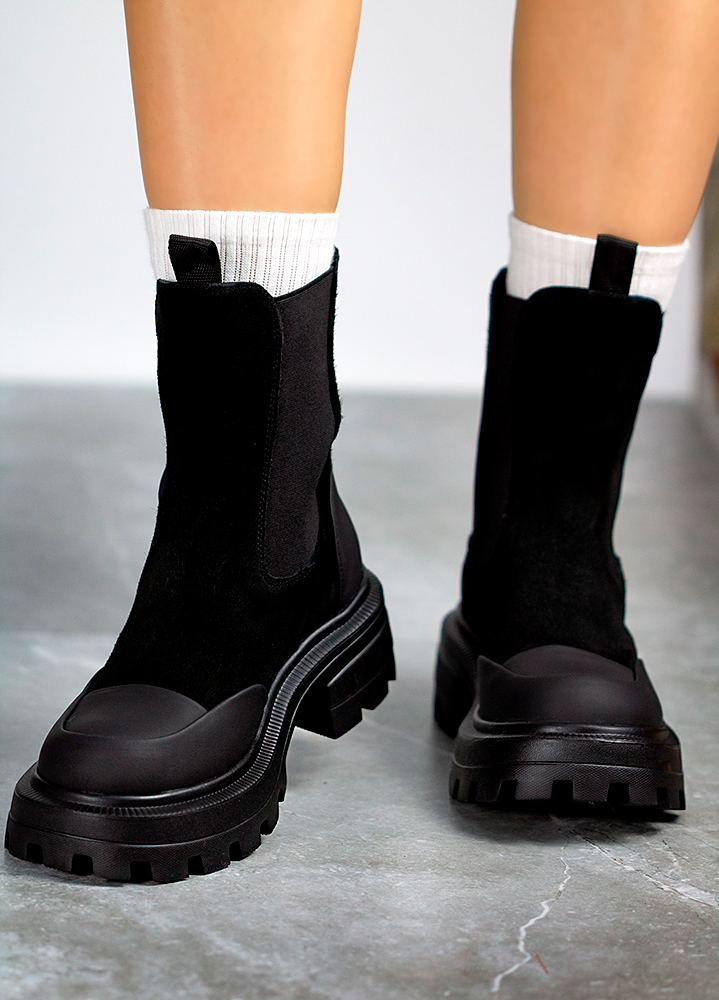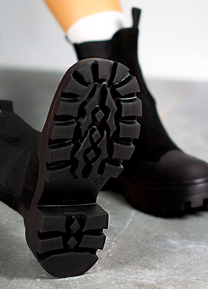 Ботинки женские замшевые черные с резинкой 8031-28 — универсальная модель для стильных и практичных образов. Натуральная замша премиум-класса, современный дизайн и надёжная подошва обеспечивают комфорт и устойчивость в любую погоду.