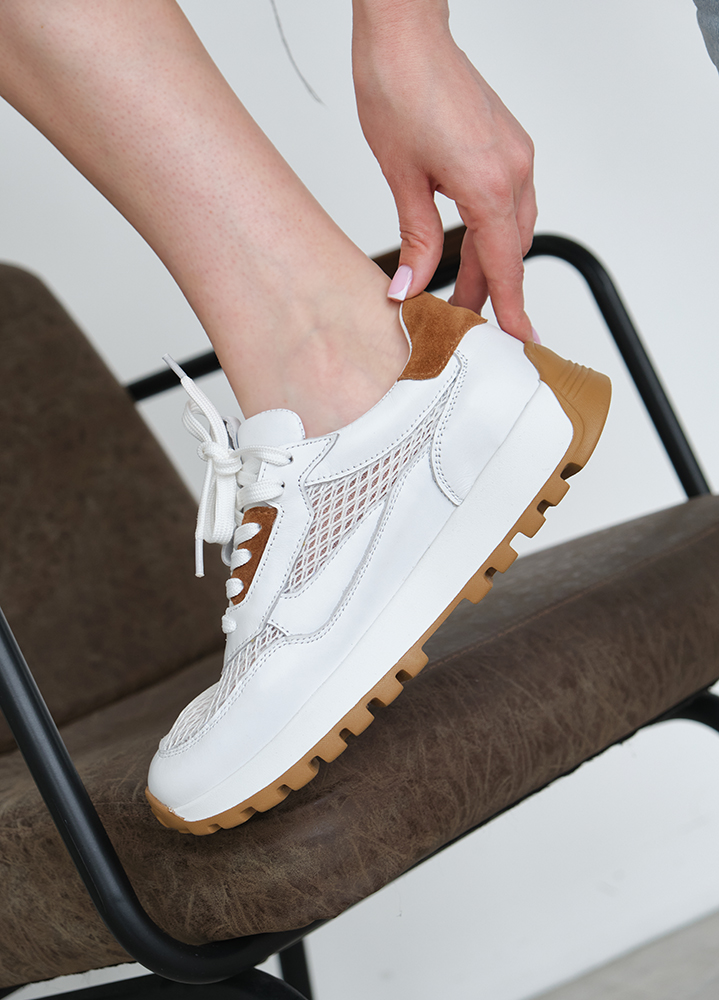 Кроссовки женские кожаные летние белые 8464-28
