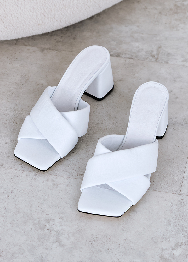 Шлепанцы кожа белые на каблуке 8457-28