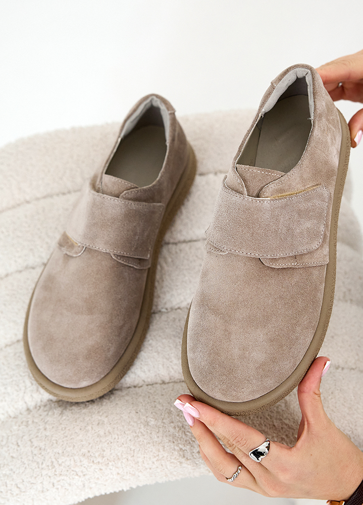 Туфли Barefoot женские замшевые беж 8535-28 на липучках.