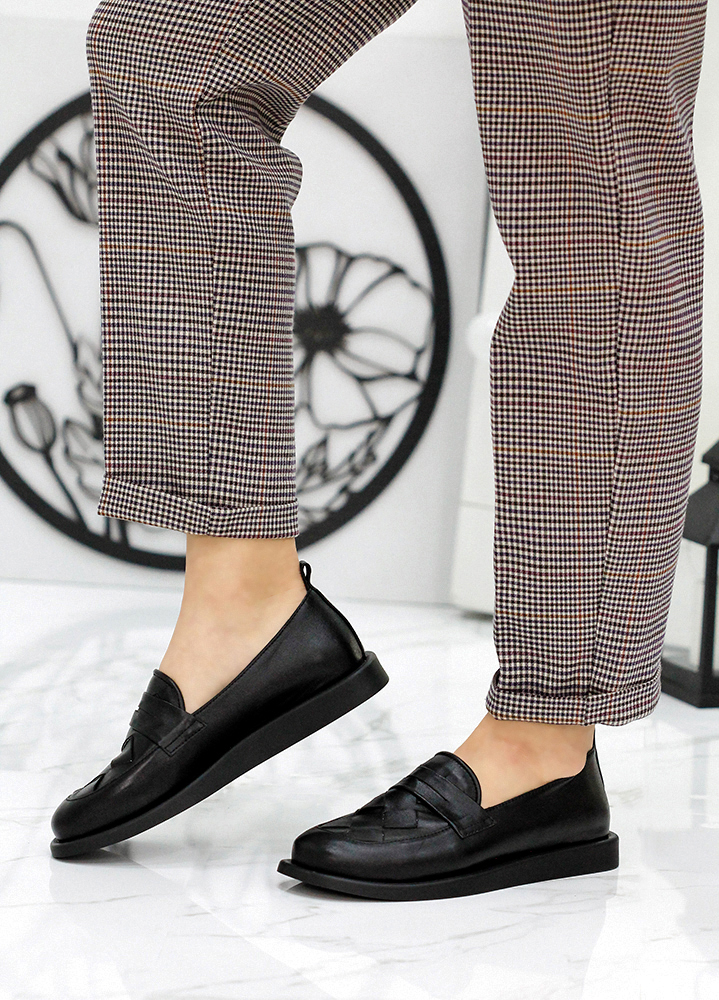 Туфли лоферы женские кожаные черные Twist 7809-28