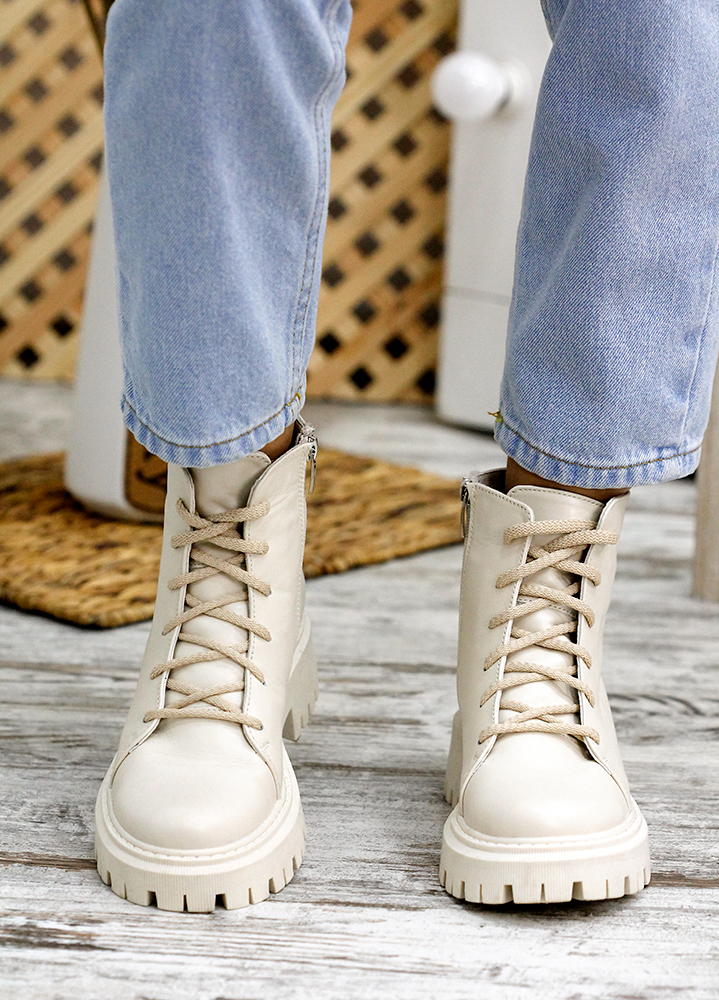 Черевики берці жіночі шкіряні бежеві 7806-28