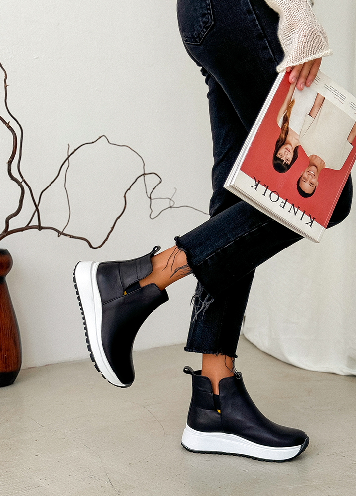 Черевики жіночі шкіряні чорні з резинкою 8209-28 — універсальна модель для стильних і практичних образів. Натуральна шкіра преміум-класу, сучасний дизайн і надійна підошва забезпечують комфорт і стійкість у будь-яку погоду.