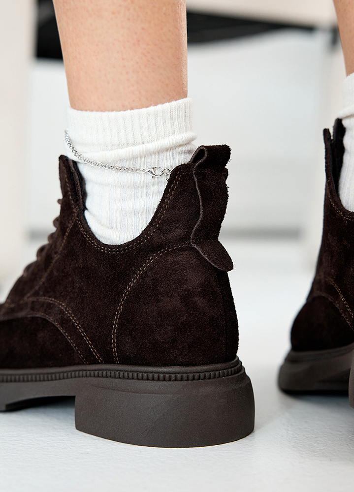 Черевики короткі жіночі замшеві коричневі 8544-28 — універсальна модель для стильних і практичних образів. Натуральна замша преміум-класу, сучасний дизайн і надійна підошва забезпечують комфорт і стійкість у будь-яку погоду.