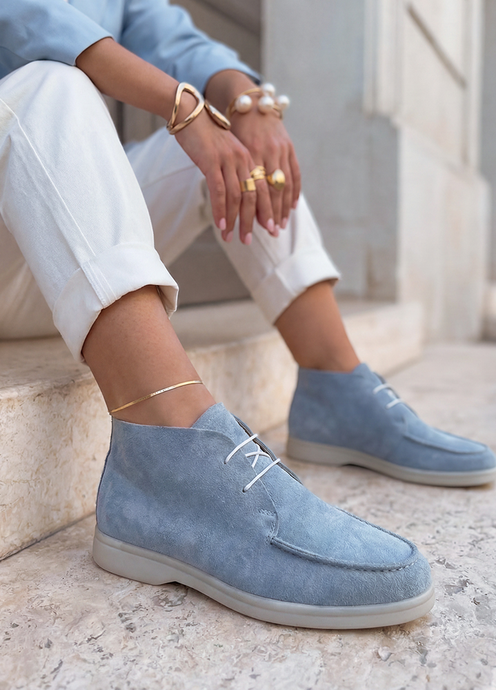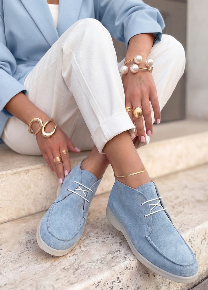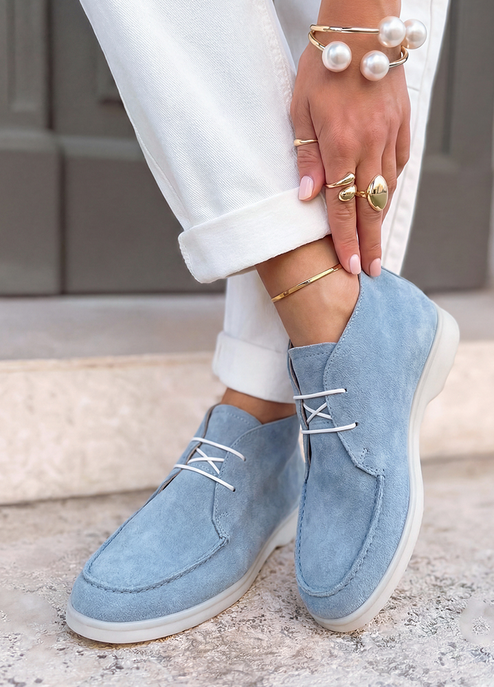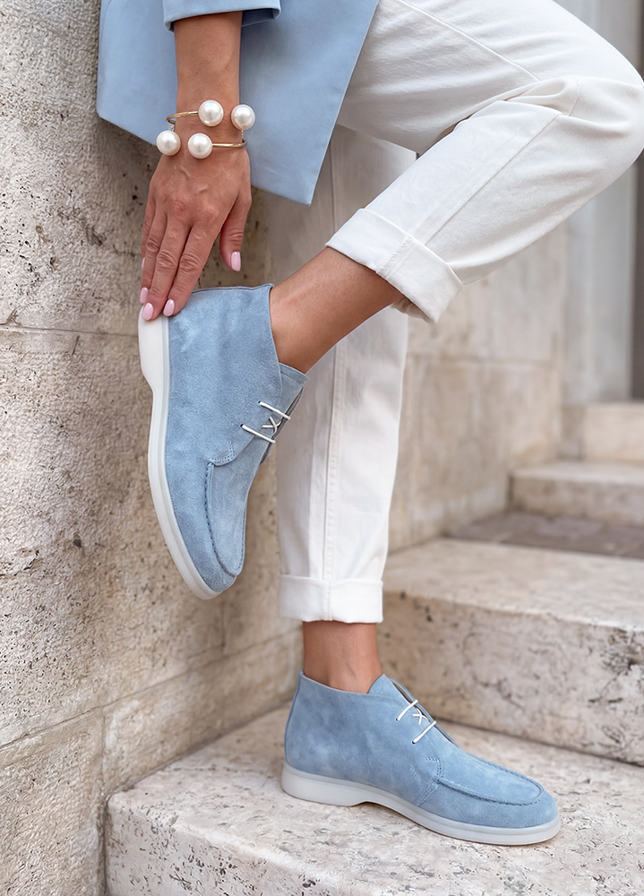 Черевики лофери жіночі блакитна замша LORO 8660-28 — універсальна модель для стильних і практичних образів. Натуральна замша преміум-класу, сучасний дизайн і надійна підошва забезпечують комфорт і стійкість у будь-яку погоду.