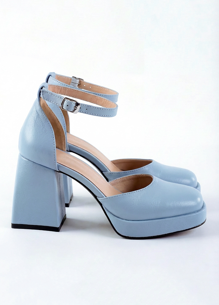 Туфлі CREDO шкіряні блакитні на високих підборах 8618-28