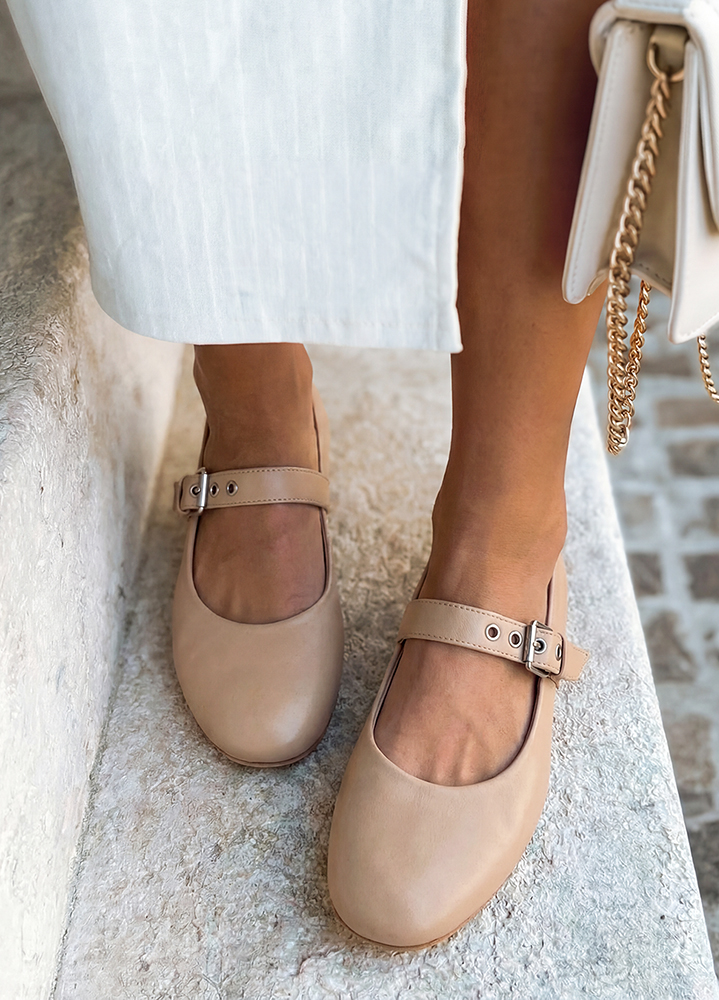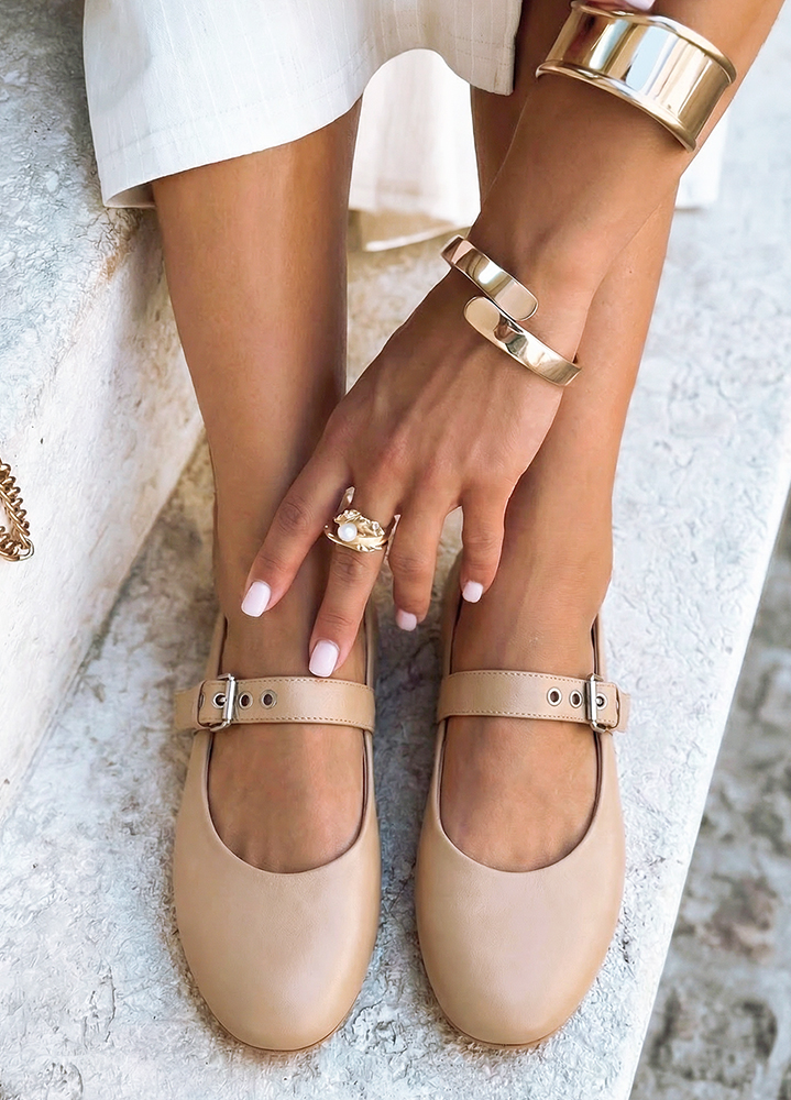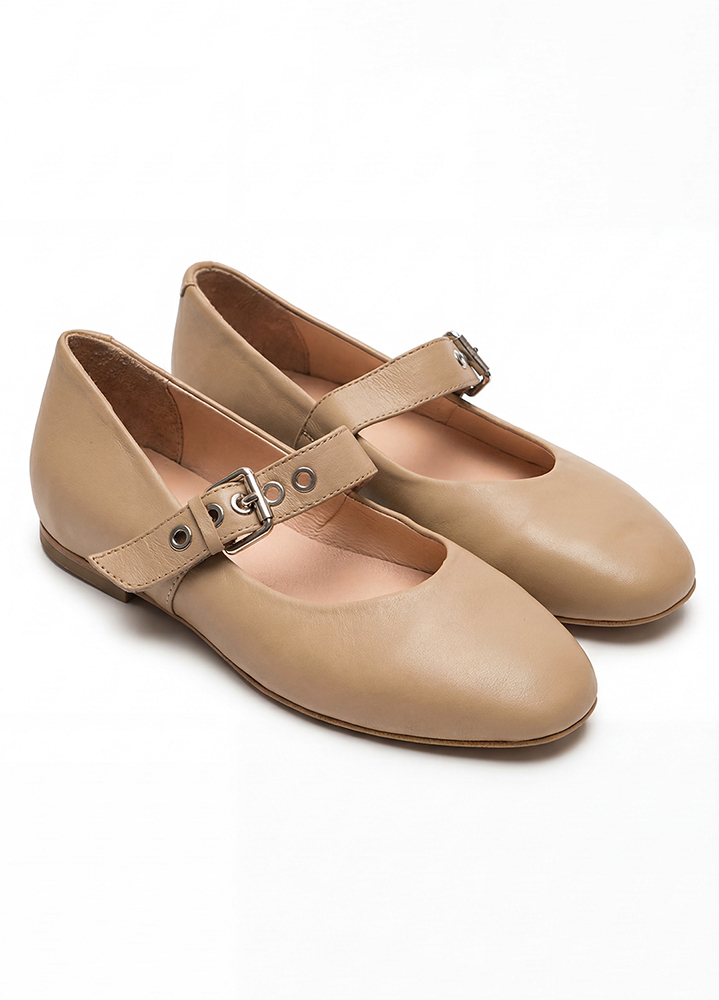 Туфлі Mary Jane з ремінцем шкіряні бежеві 8638-28